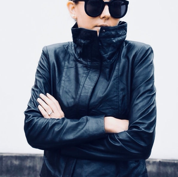 SHOP TUMBLE JACKETDesigned to be worn fitted & sculpture to the body. With our Signature angled waist line and angles front zip. Creates a beautiful shape & silhouette.