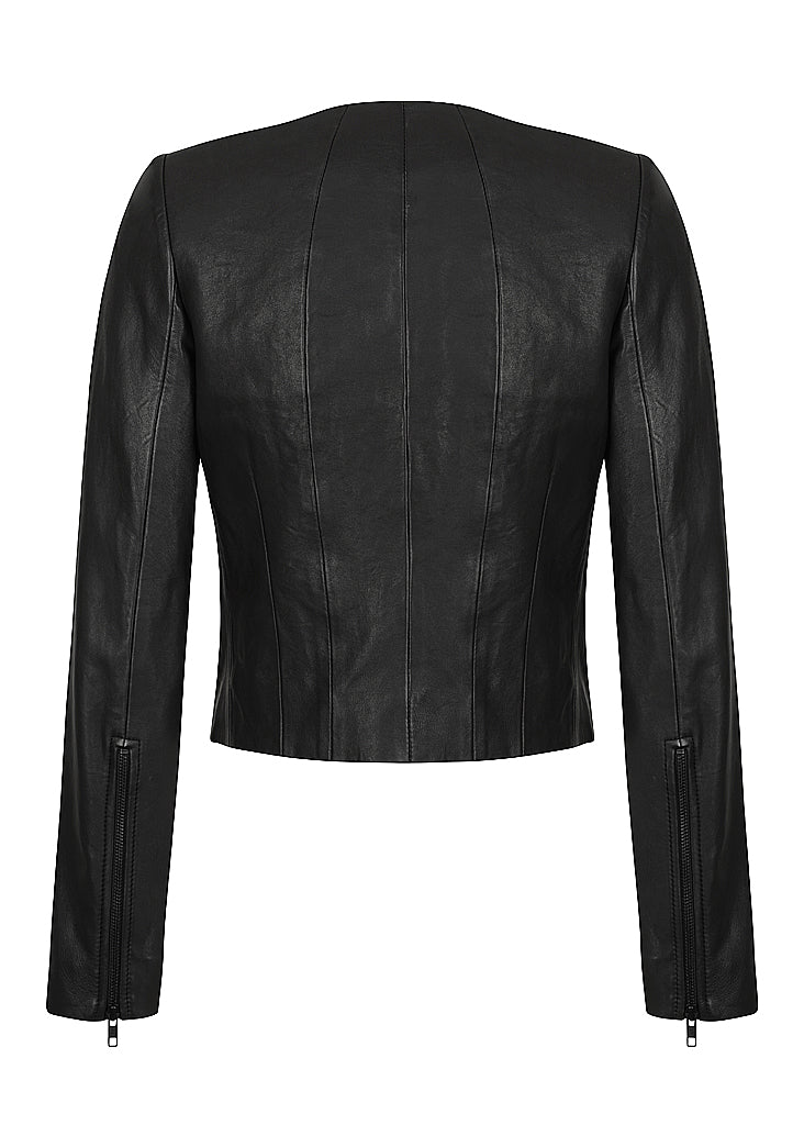 L/S Cropped Leather Jacket with Zips - Matt Black - NEW ARRIVAL - BEST SELLER