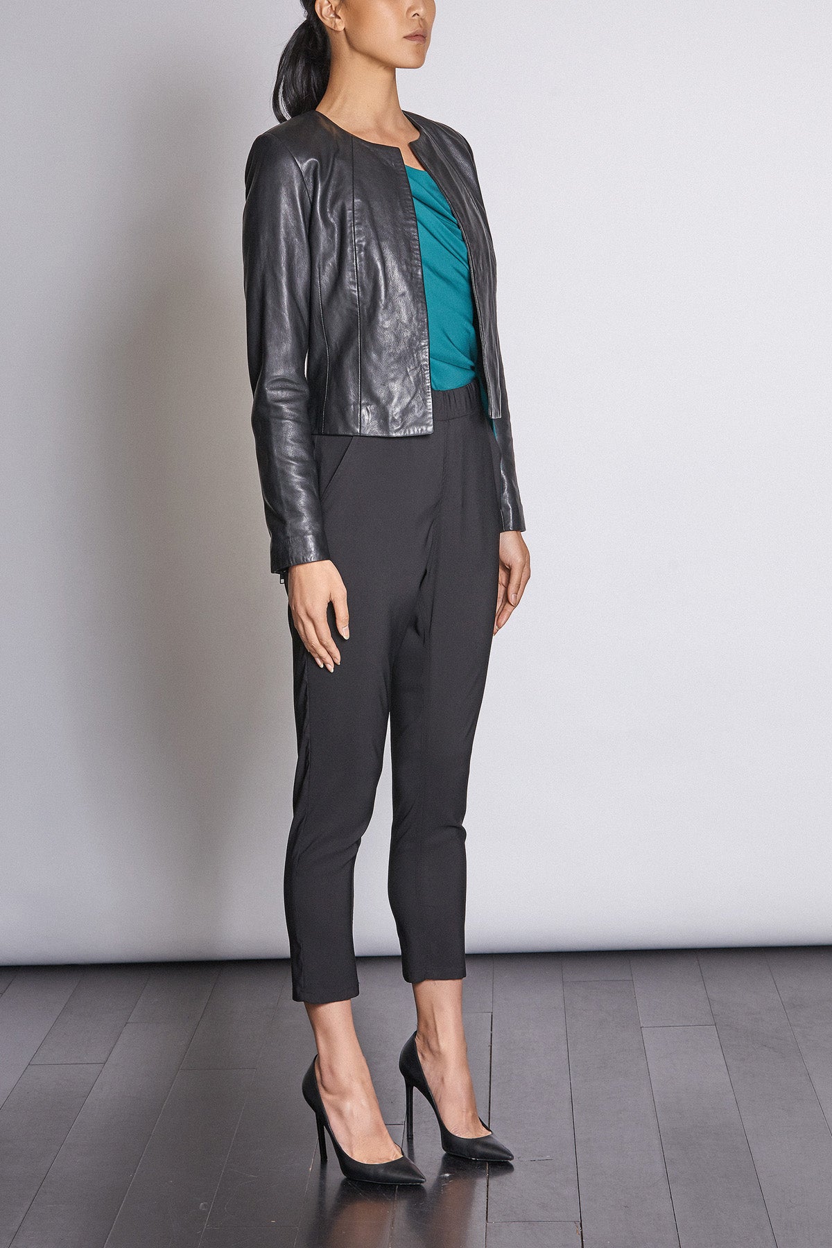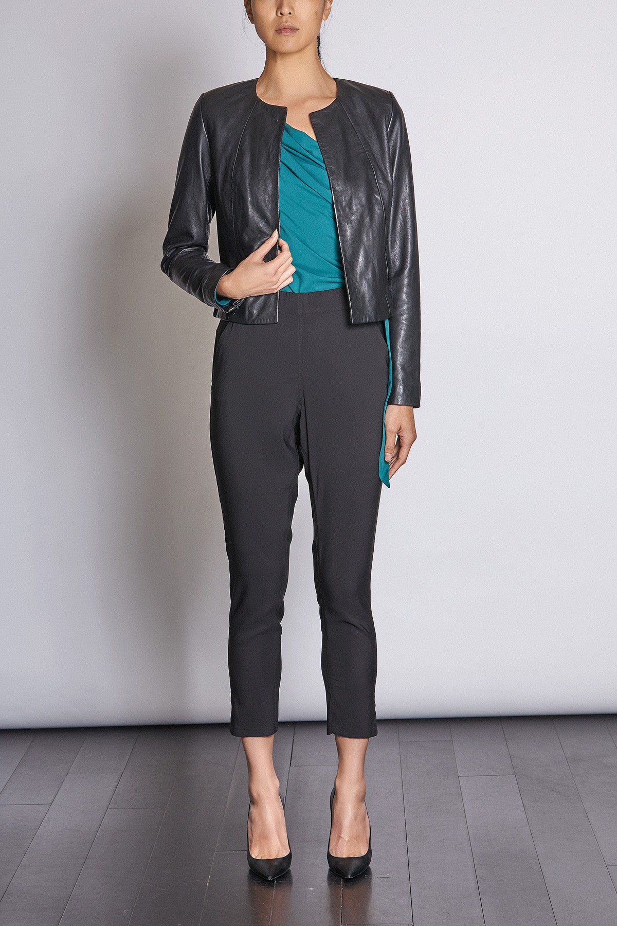 Classic fit and cropped in length to finish on the waist 4cm longer than the cropped 3/4 Classic style. Featuring our signature French Curved body seams and super soft buttery lamb leather nappa.